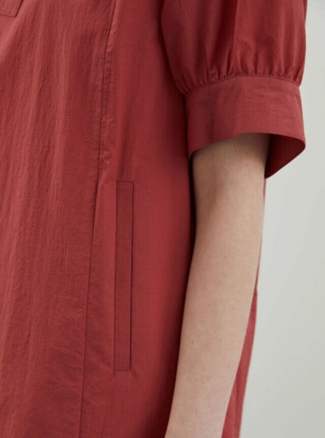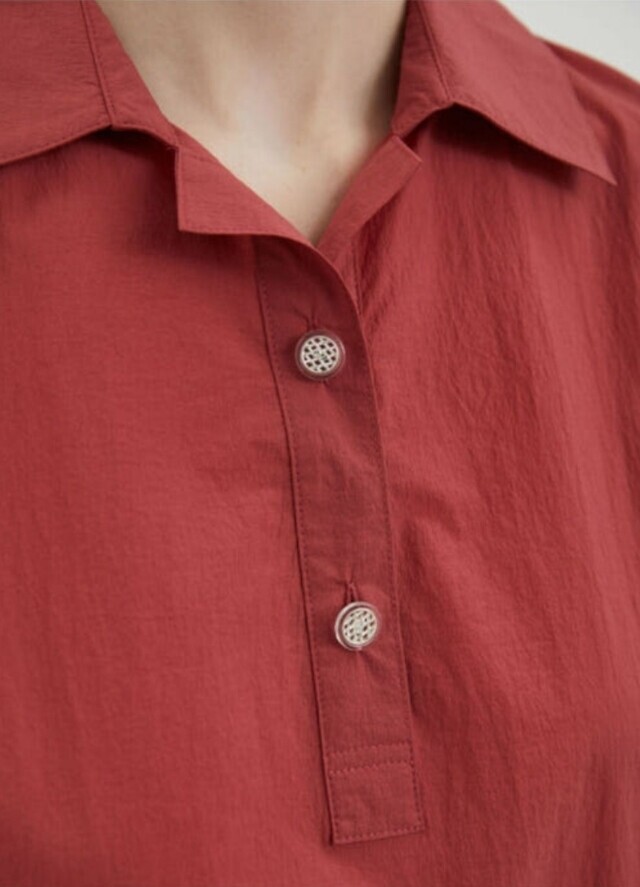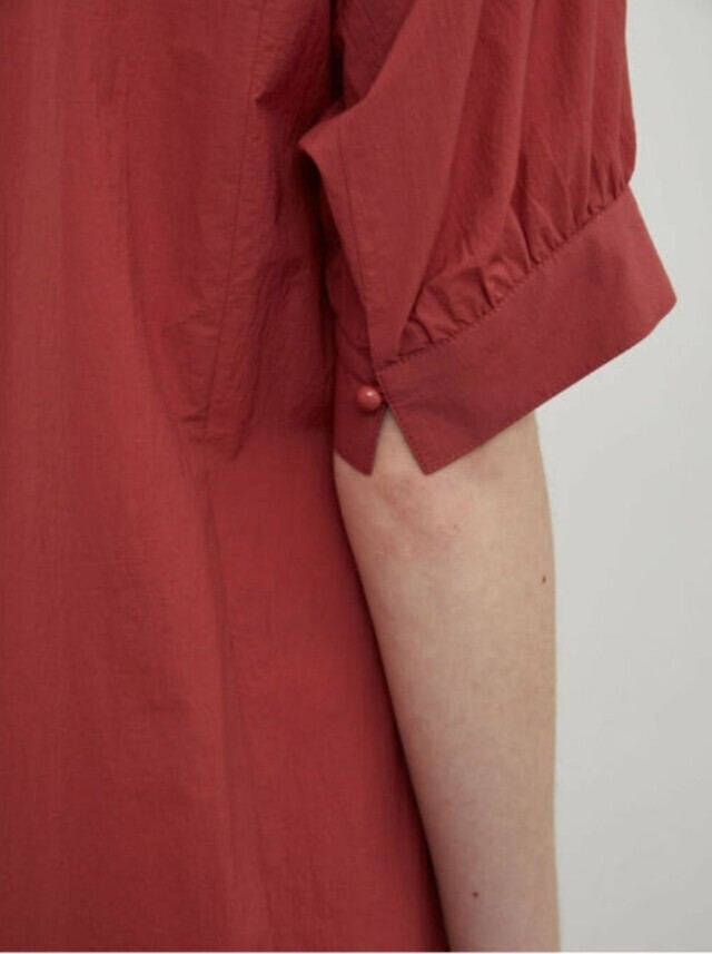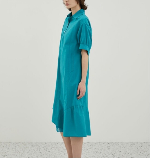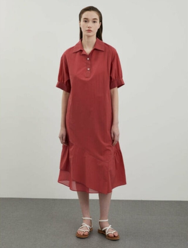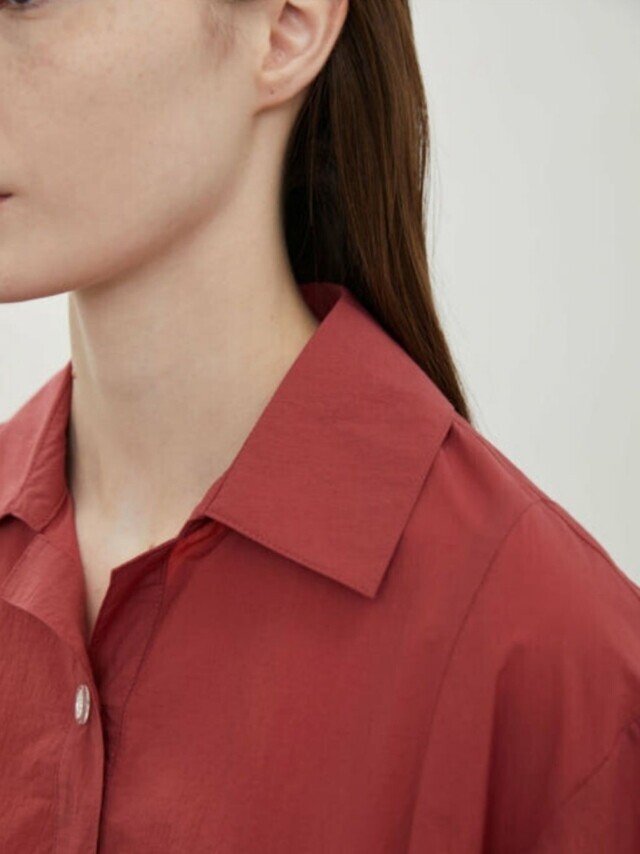 밑단과 소매에 셔링을 잡아 볼륨감 있는 실루엣을 연출하여 언밸런스하게 플레어지는 밑단이 특징이며