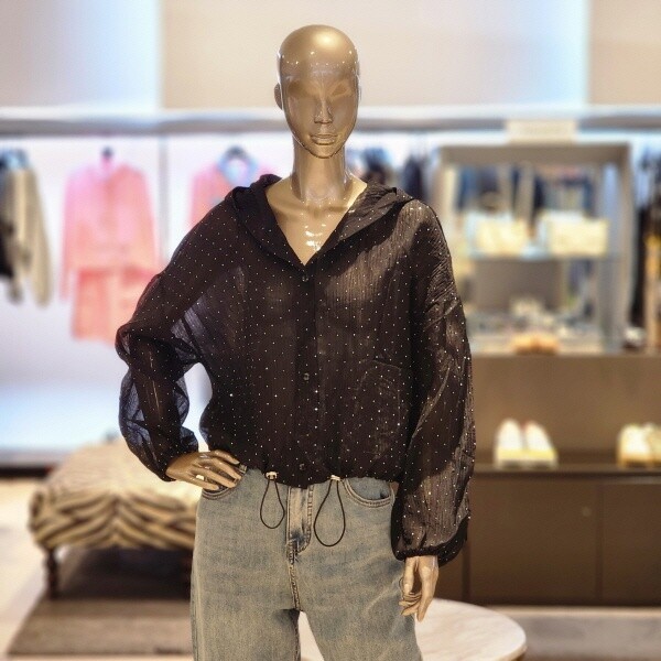 BFM5PNMP9110_밑단 스트링 비즈장식 후드점퍼
