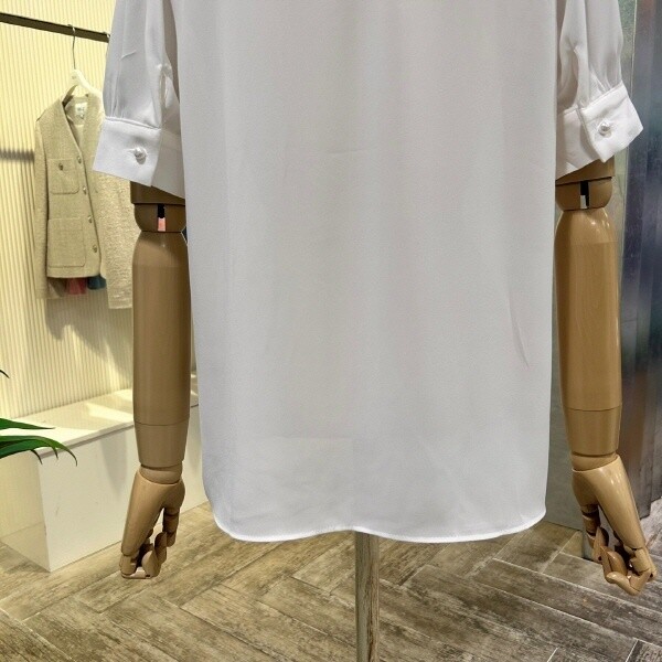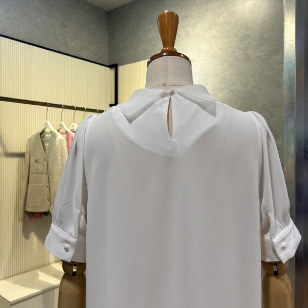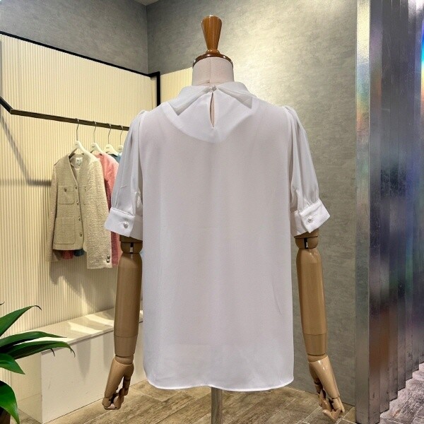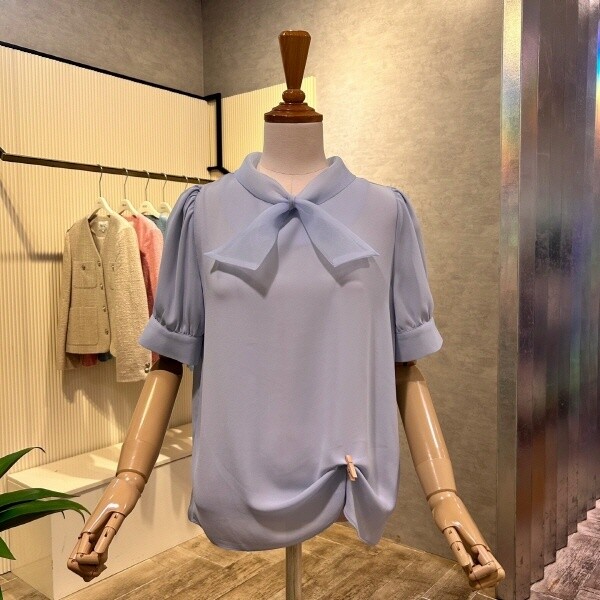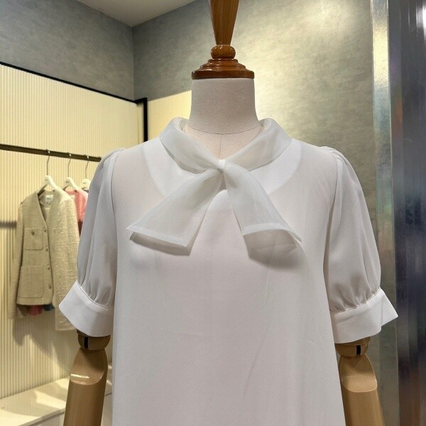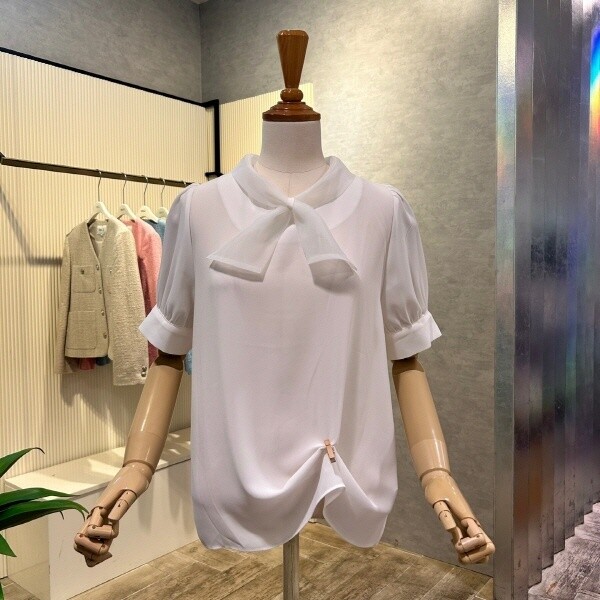 2025년 s/s?신상 시스루 타이 블라우스 입니다.세련된 디자인이 포인트 아이템 입니다.?