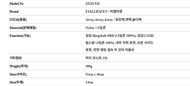 | 4. 크기 | SIZE - 31cmx40cmx14cm |