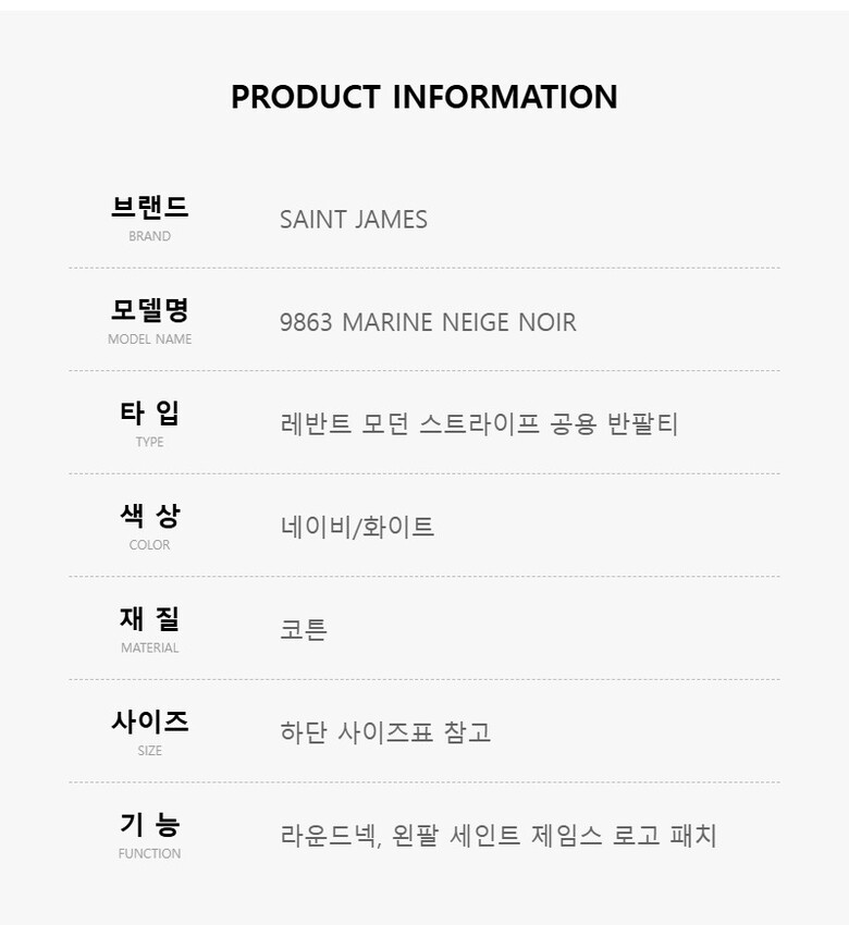 세인트제임스 9863 MARINE NEIGE NOIR 레반트 모던 스트라이프 공용 반팔티