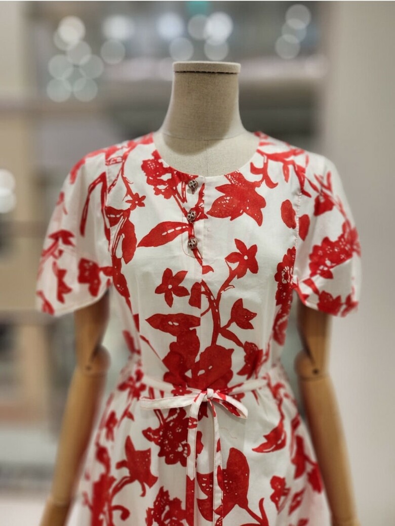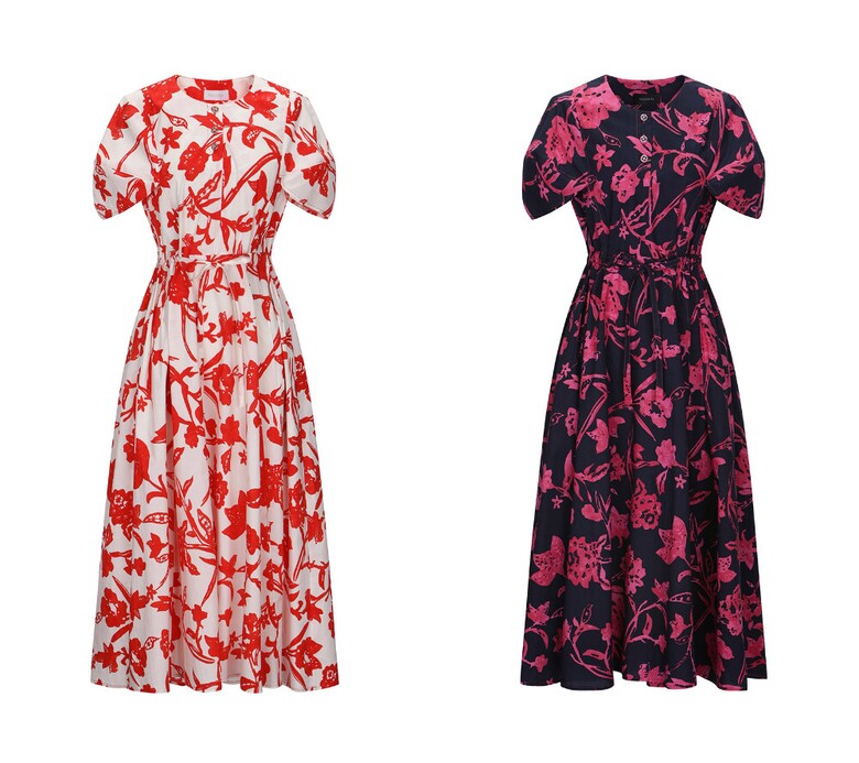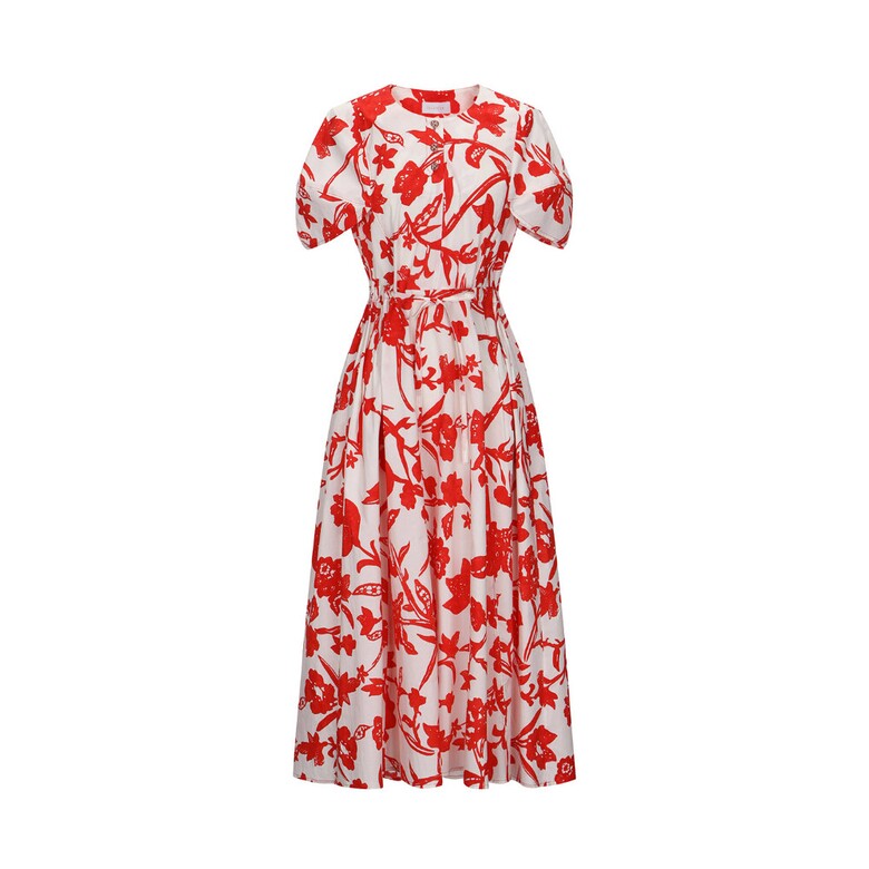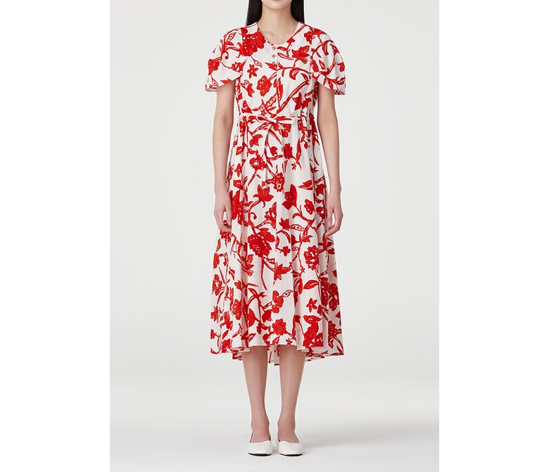 (발렌시아)플라워 패턴 플레어 롱 원피스 246MO38