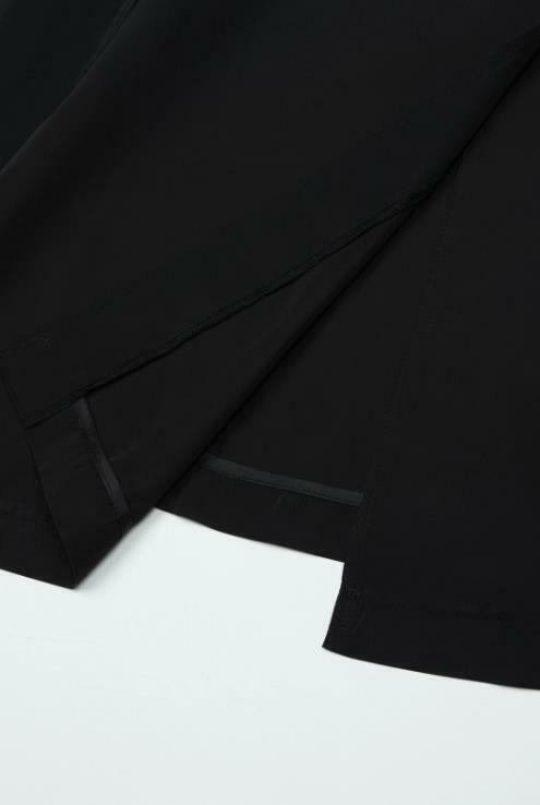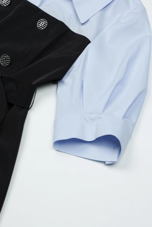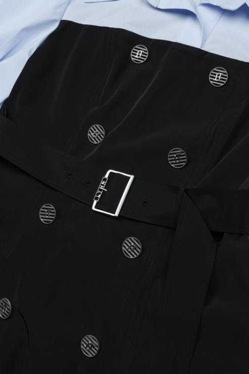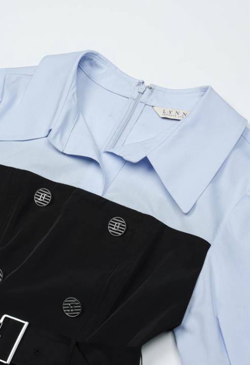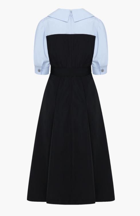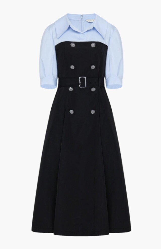 소재를 배색하여 블라우스와 원피스를 레이어드한 듯한 디자인으로 포인트를 주었습니다.