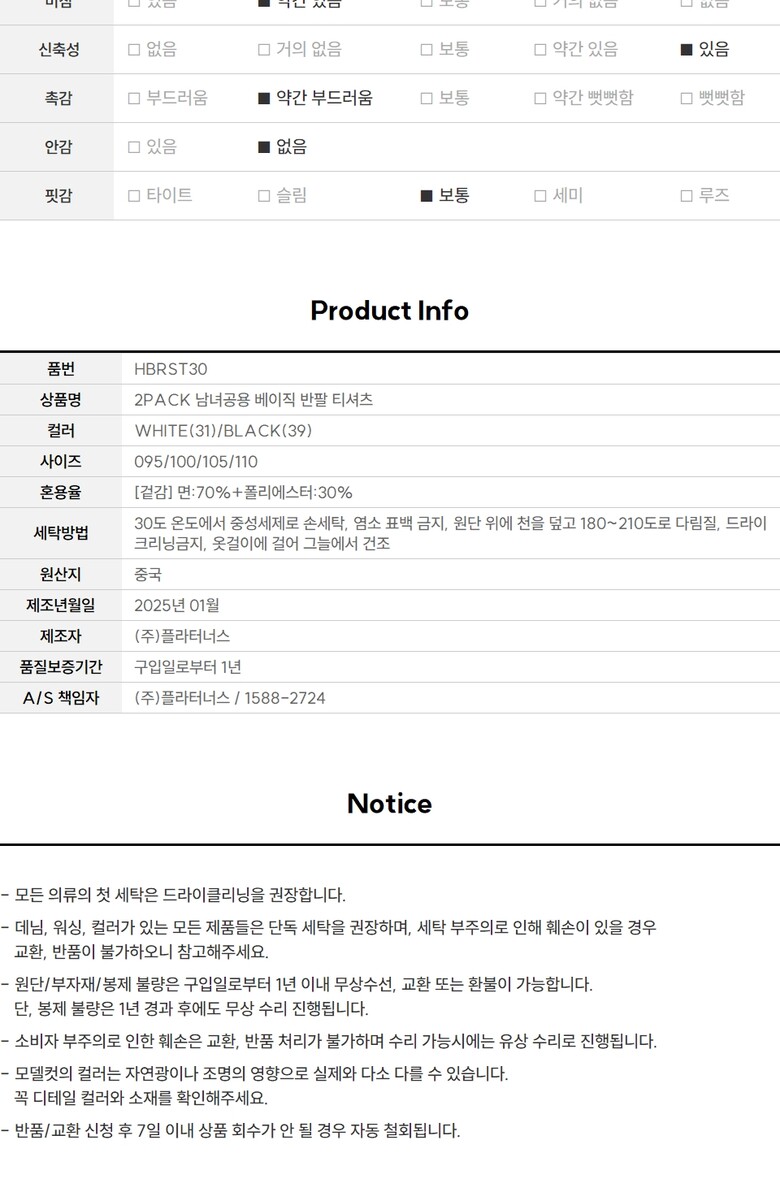 • 처음 배송된 상품상태와 다를 경우(세탁/착용 후 외출하신 경우) 반품이 불가합니다.