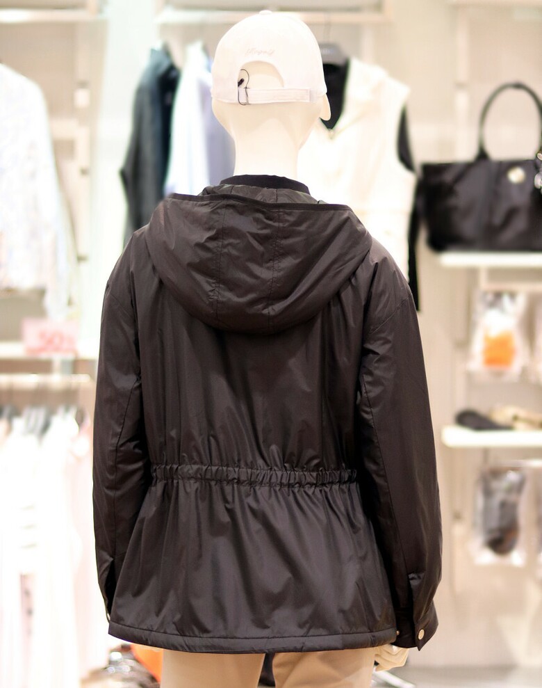 리싸이클 패딩 충전재를 사용한 경량 간절기 후드 점퍼입니다