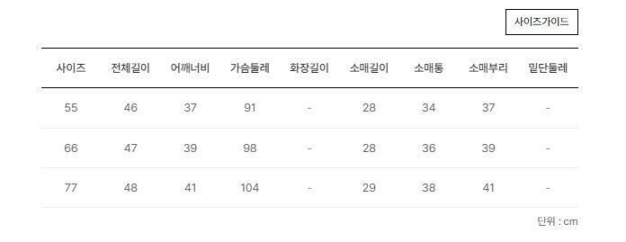 슬리브리스 탑 위에 걸치거나 단품으로 착용하기 좋은 아이템입니다.
