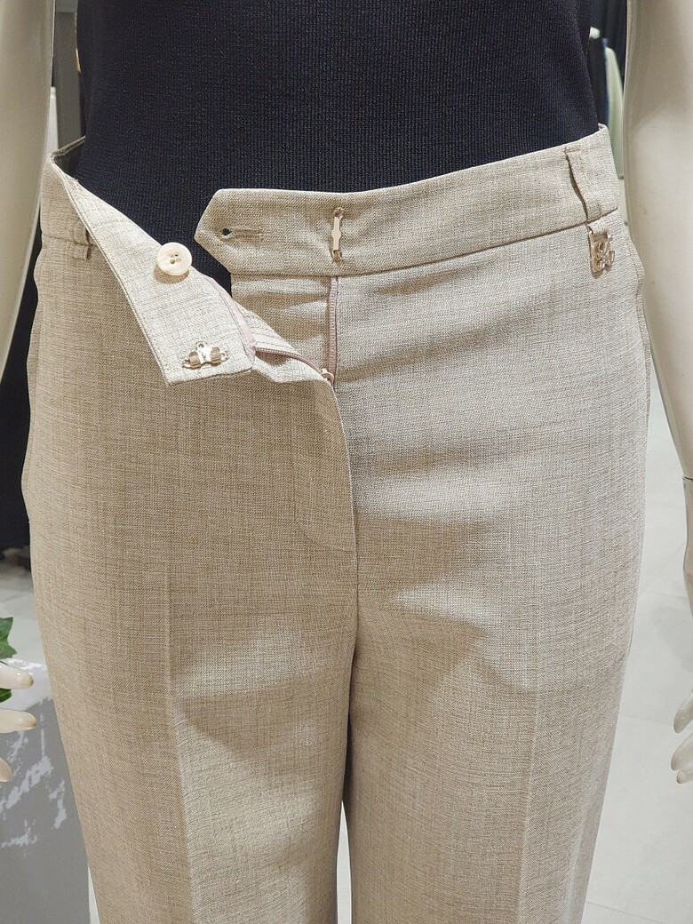포멀한 무드가 느껴지는 스트레이트 핏 슬랙스입니다.