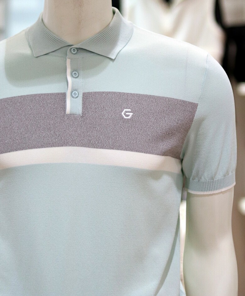 엘르골프 S/S 남성 가슴블럭 반팔 스웨터 6J-33601-740