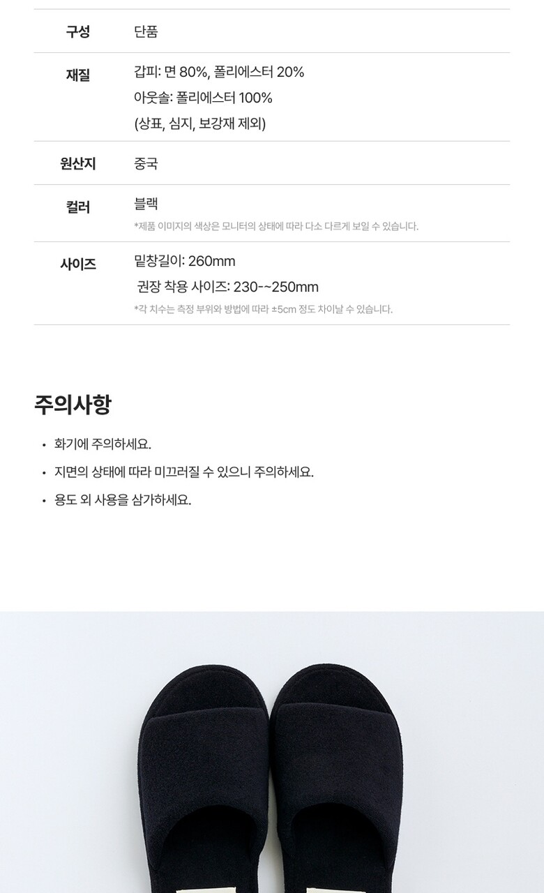 모던하우스 코튼 테리 슬리퍼 트루블랙 FS1025019