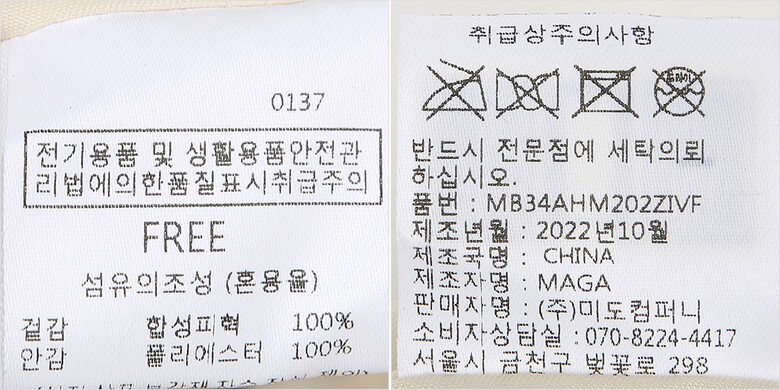 • 처음 배송된 상품상태와 다를 경우(세탁/착용 후 외출하신 경우) 반품이 불가합니다.