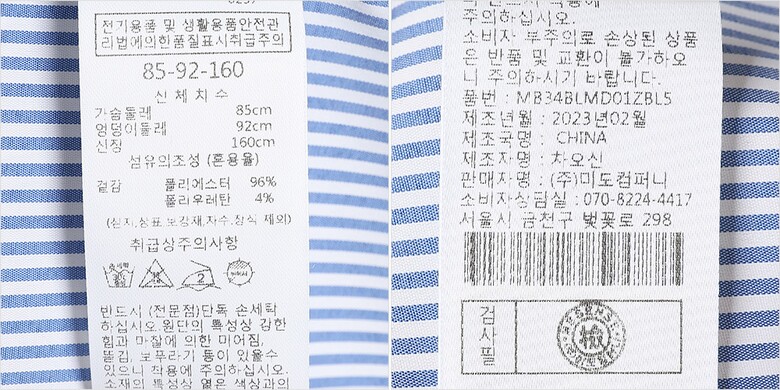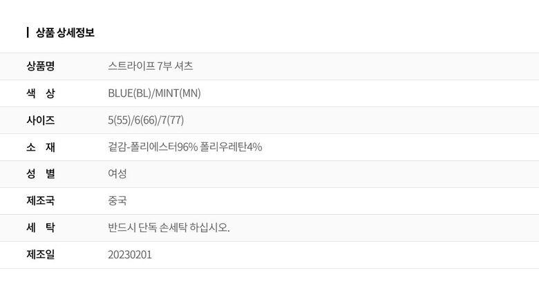| 6. 세탁방법 및 취급시 주의사항 | 상세페이지 참조 |