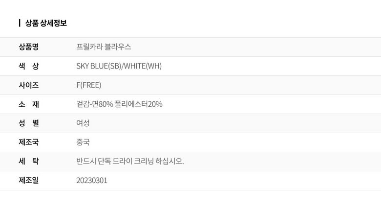 | 6. 세탁방법 및 취급시 주의사항 | 상세페이지 참조 |