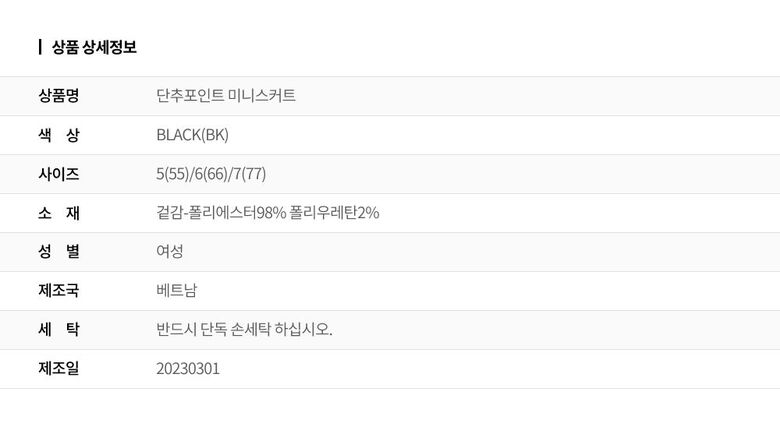 | 6. 세탁방법 및 취급시 주의사항 | 상세페이지 참조 |
