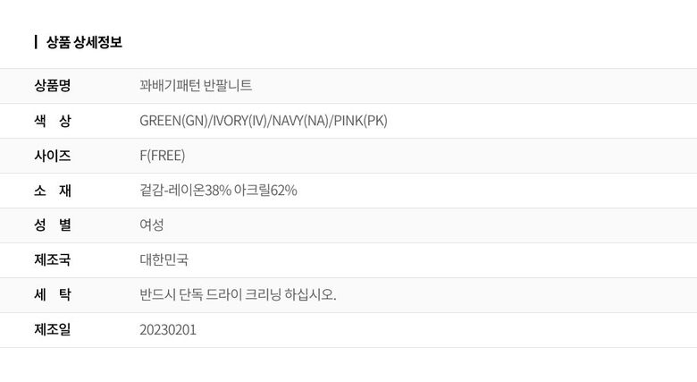 2. 색상 색상:GREEN(GN)/IVORY(IV)/NAVY(NA)/PINK(PK)