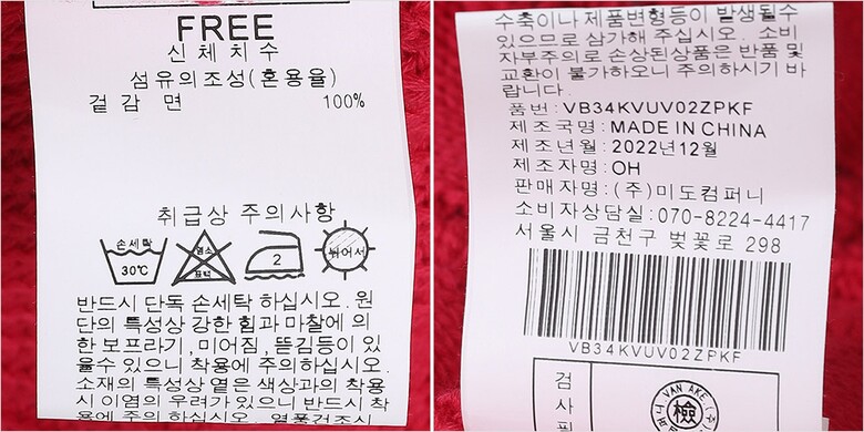 | 6. 세탁방법 및 취급시 주의사항 | 상세페이지 참조 |