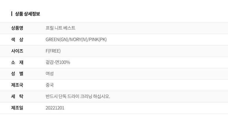 | 2. 색상 | 색상:GREEN(GN)/IVORY(IV)/PINK(PK) |
