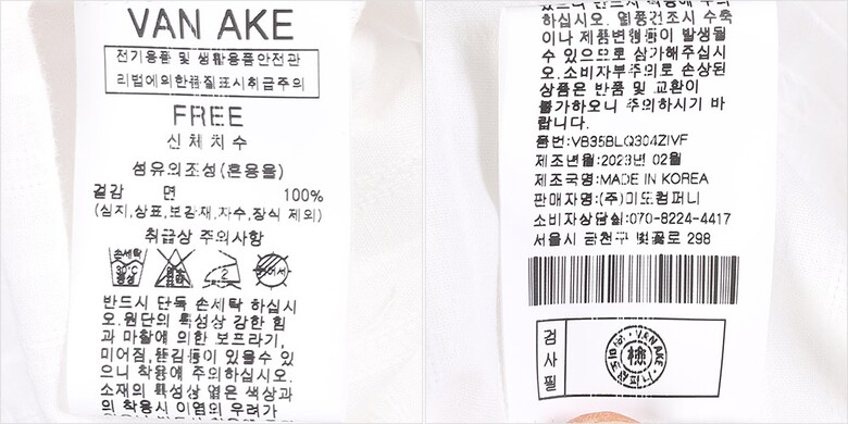 | 6. 세탁방법 및 취급시 주의사항 | 상세페이지 참조 |