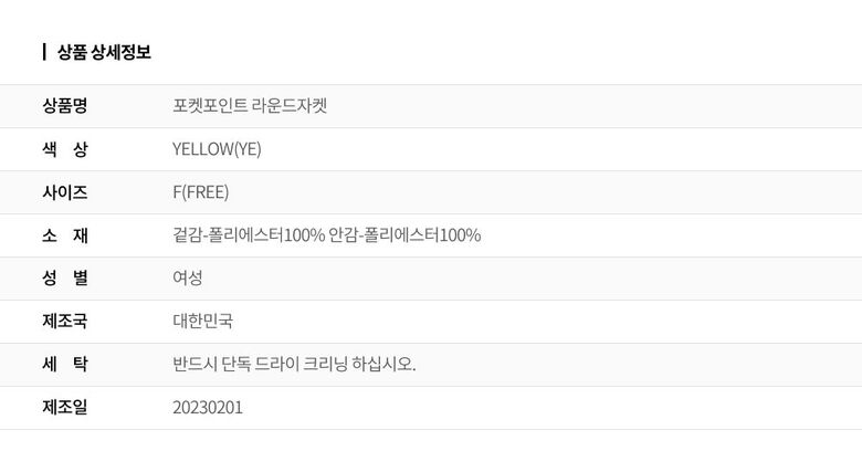 | 6. 세탁방법 및 취급시 주의사항 | 상세페이지 참조 |