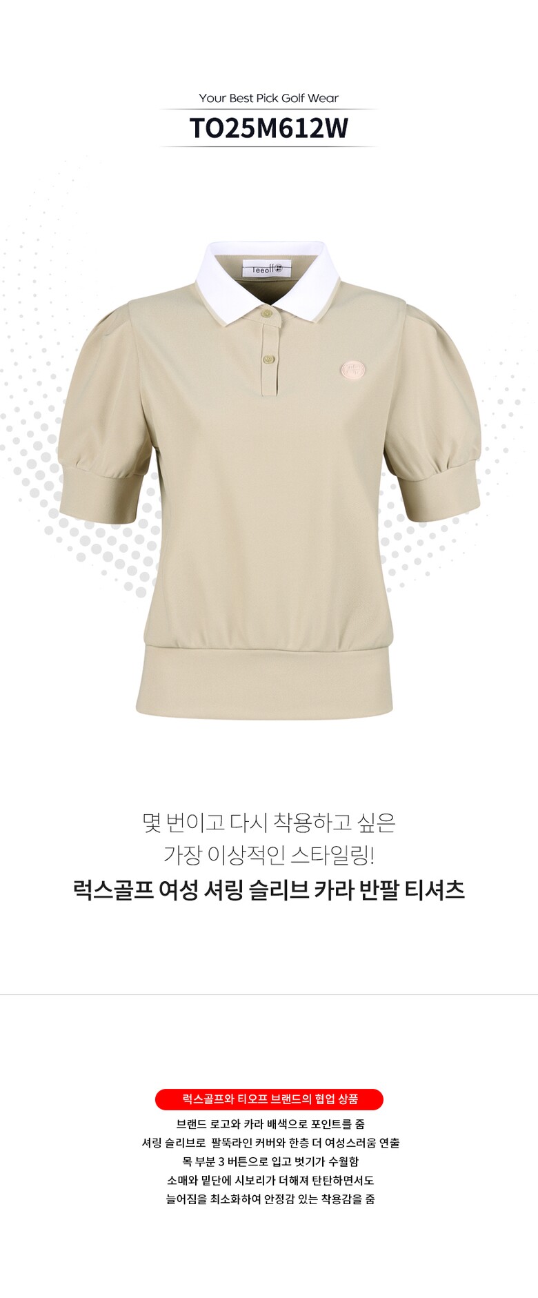 골피아 TO25M612W 여성 셔링 슬리브 카라 반팔 티셔츠