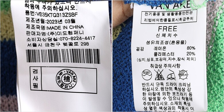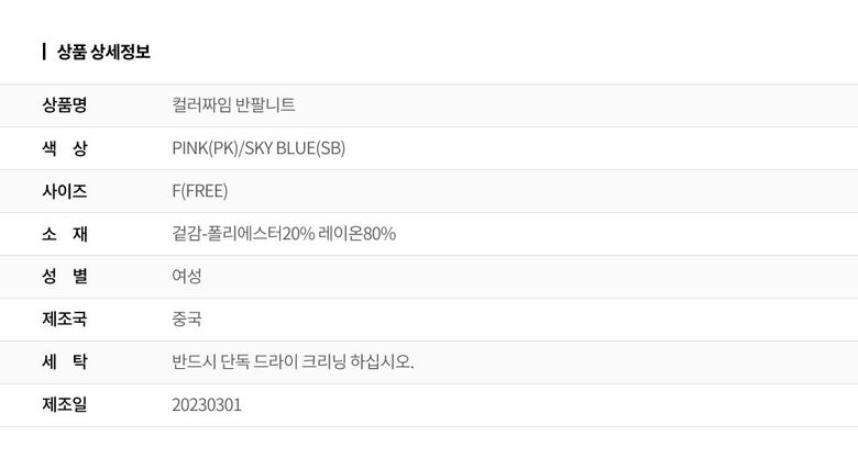 | 6. 세탁방법 및 취급시 주의사항 | 상세페이지 참조 |