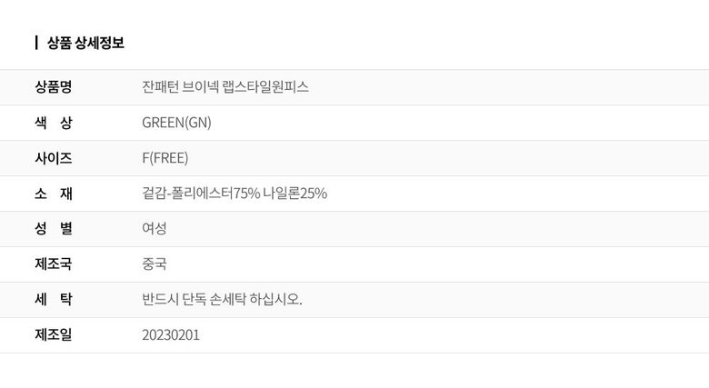 | 6. 세탁방법 및 취급시 주의사항 | 상세페이지 참조 |