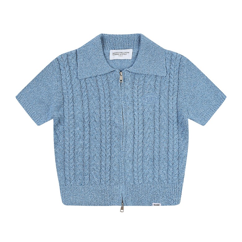[반에이크] 카라 집업 반팔 니트가디건_VB36KCMV02Z