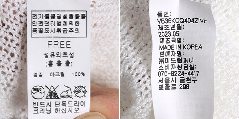 | 1. 제품 소재 (섬유의 조성 또는 혼용률을 백분율로 표시, 기능성인 경우 성적서 또는 허가서) | 겉감-아크릴100% |
