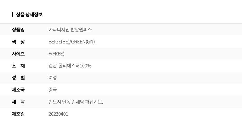| 2. 색상 | 색상:BEIGE(BE)/GREEN(GN) |