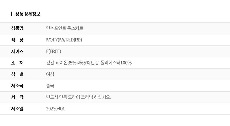 | 6. 세탁방법 및 취급시 주의사항 | 상세페이지 참조 |