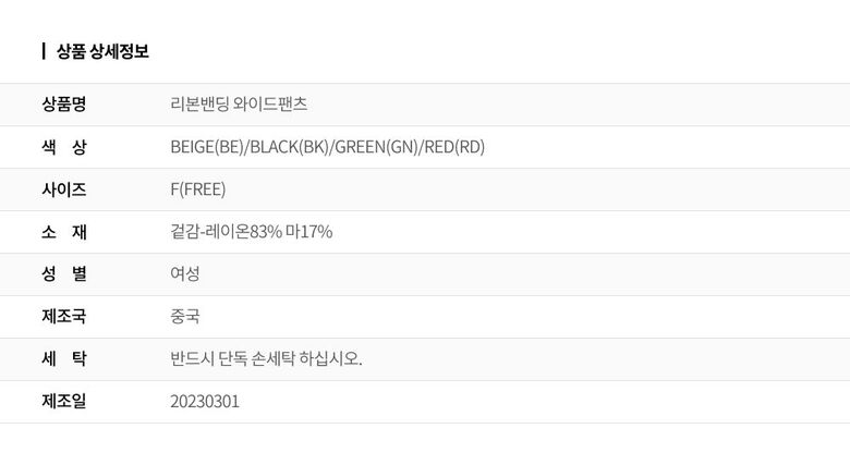 [반에이크] 리본밴딩 와이드팬츠_VB37SLUD03Z