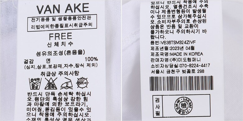 | 6. 세탁방법 및 취급시 주의사항 | 상세페이지 참조 |