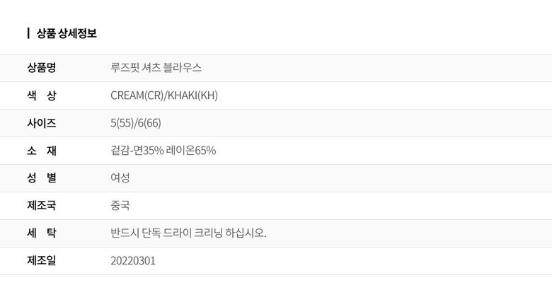 | 2. 색상 | 색상:CREAM(CR)/KHAKI(KH) |