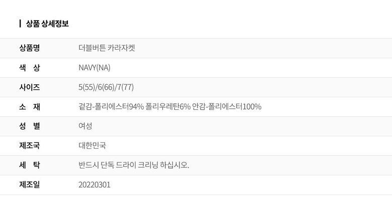 | 6. 세탁방법 및 취급시 주의사항 | 상세페이지 참조 |