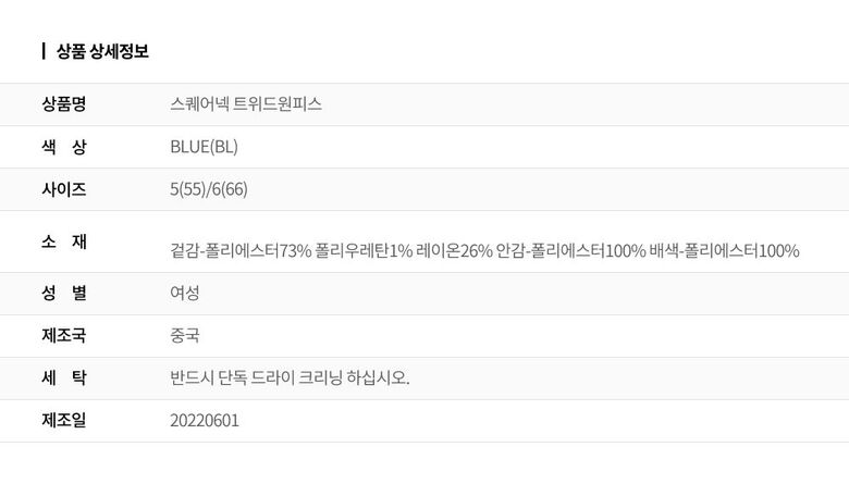 | 6. 세탁방법 및 취급시 주의사항 | 상세페이지 참조 |