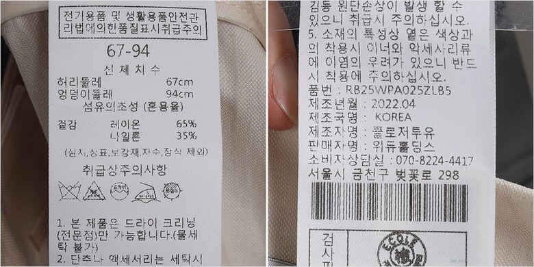 | 6. 세탁방법 및 취급시 주의사항 | 상세페이지 참조 |