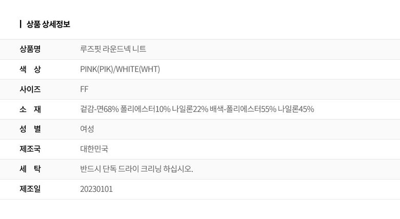 2. 색상 | 색상:PINK(PIK)/WHITE(WHT) |