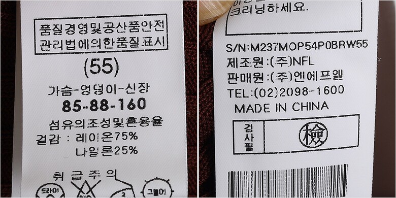 | 1. 제품 소재 (섬유의 조성 또는 혼용률을 백분율로 표시, 기능성인 경우 성적서 또는 허가서) | 겉감-나일론25% 레이온75% |