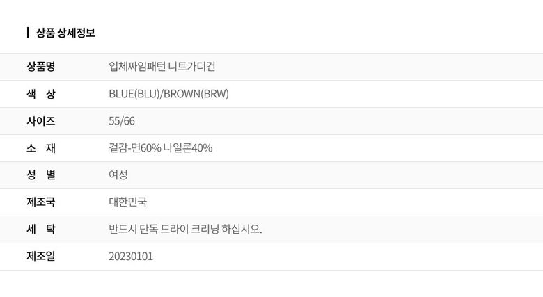 | 6. 세탁방법 및 취급시 주의사항 | 상세페이지 참조 |