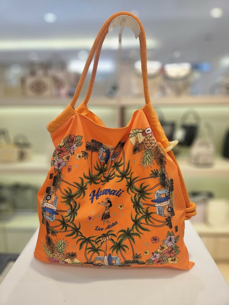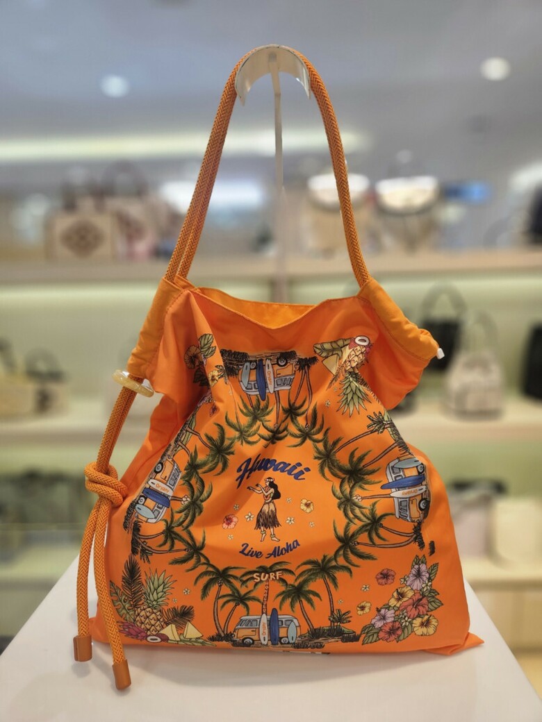 25SS 시즌 컨셉인 알로하 바이브 무드가 느껴지는 하와이안 감성의 프린트 패턴의 숄더백입니다.