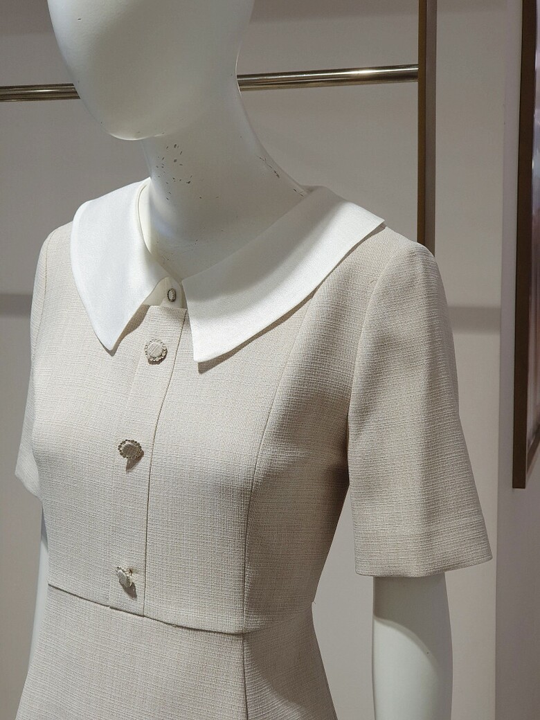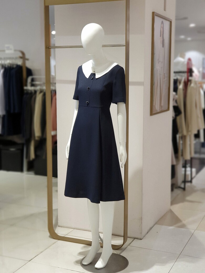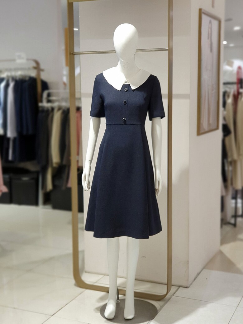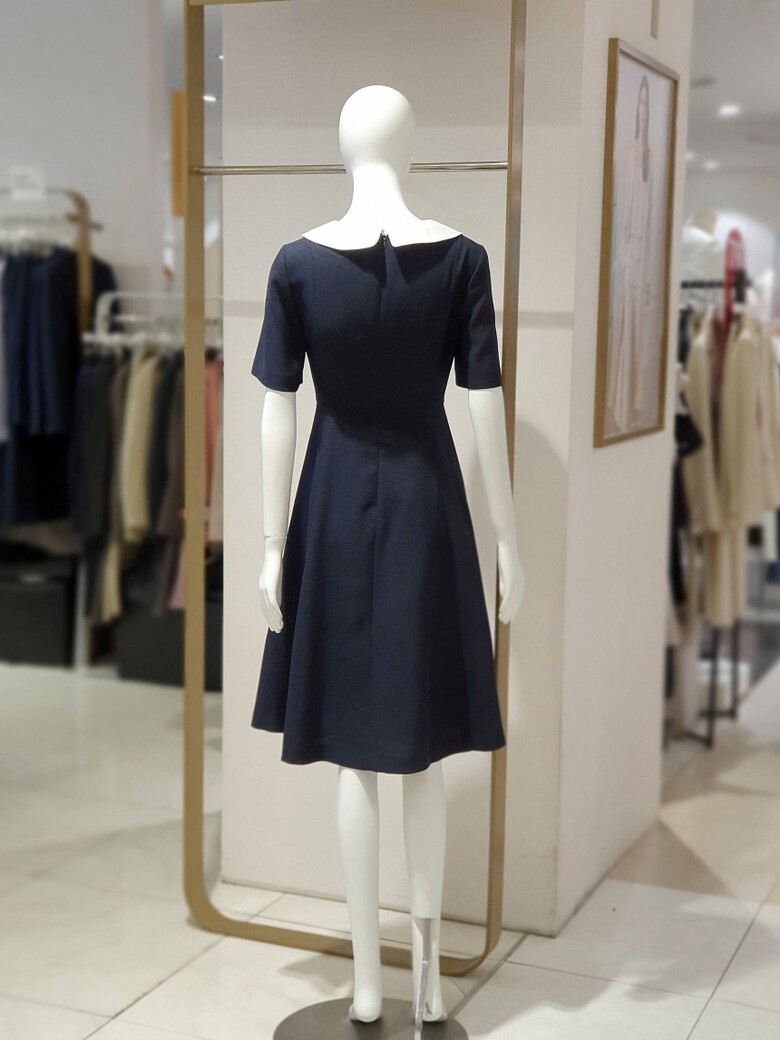 탈착 배색 칼라 플레어 원피스 10DRB45WOAM10D