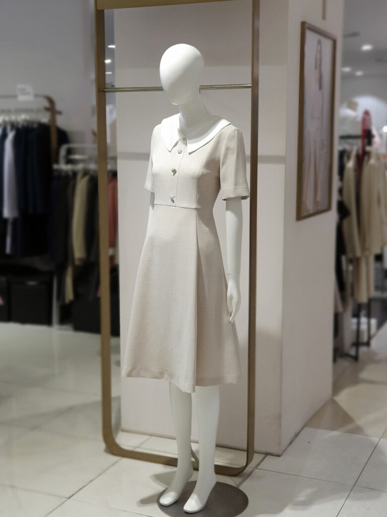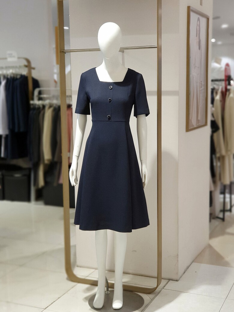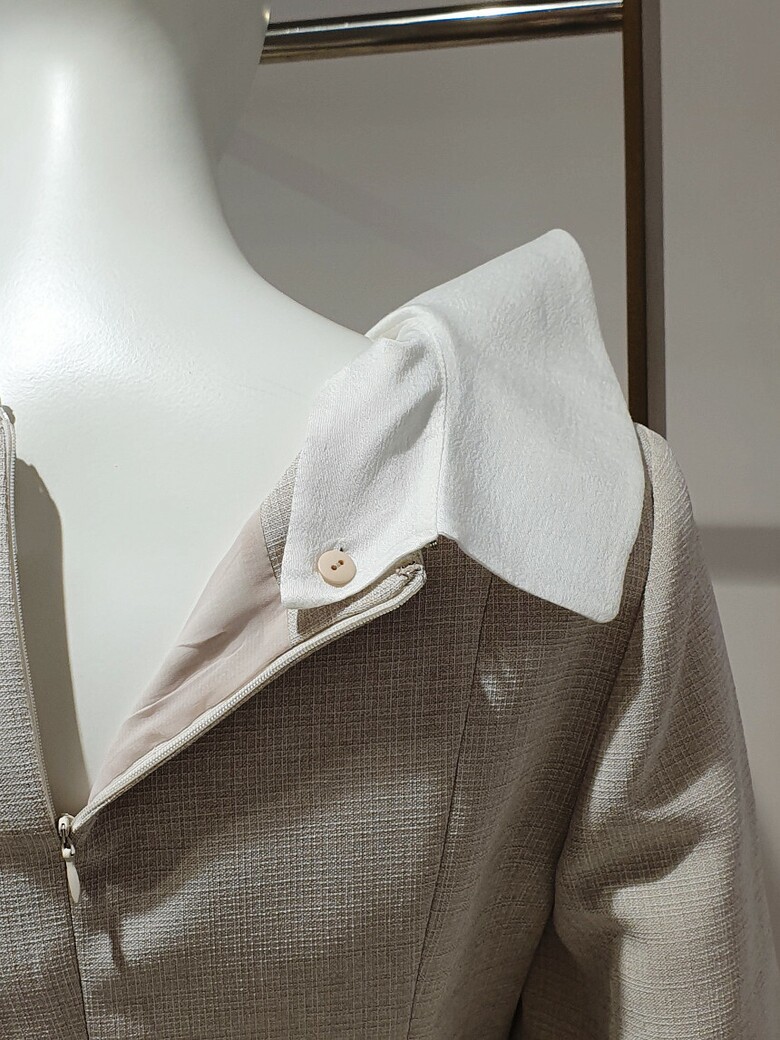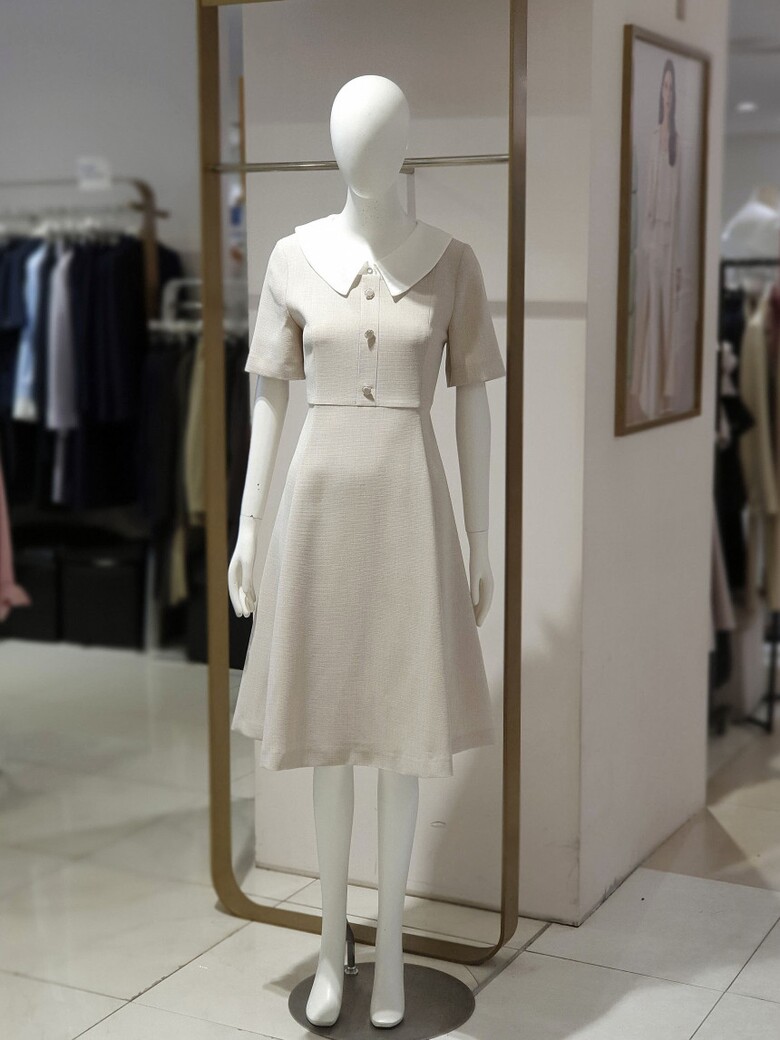 탈착 배색 칼라 플레어 원피스 10DRB45WOAM10D