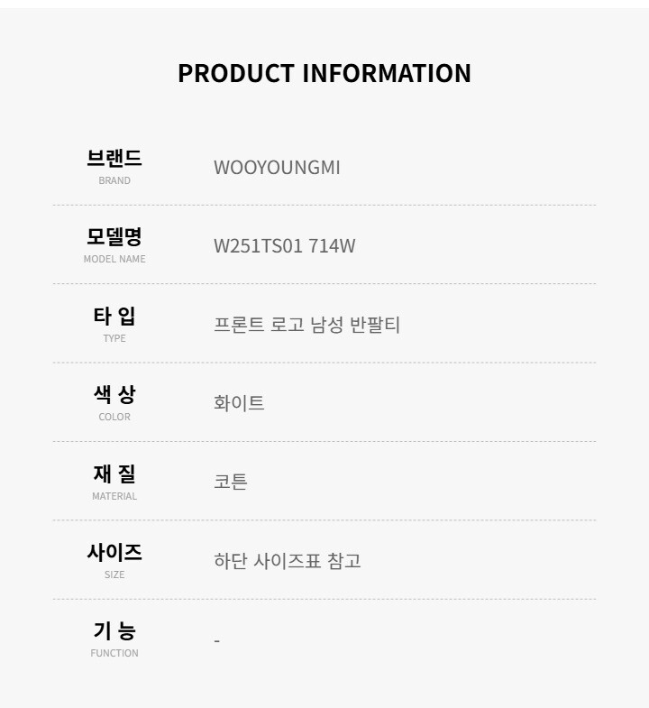 우영미 반팔 W251TS01 714W 프론트 로고 남성반팔티 당일발송