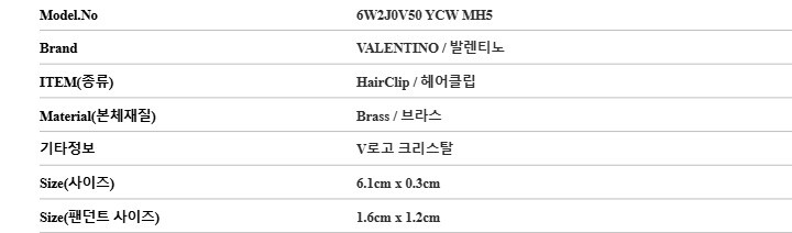 발렌티노 6W2J0V50 YCW MH5 (J0V50 YCW MH5) 가라바니 V로고 크리스탈 헤어클립