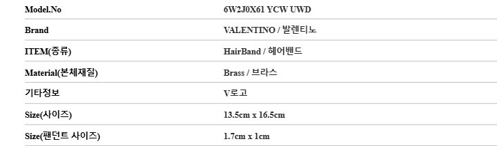 발렌티노 6W2J0X61 YCW UWD (J0X61 YCW UWD) 가라바니 V로고 헤어밴드