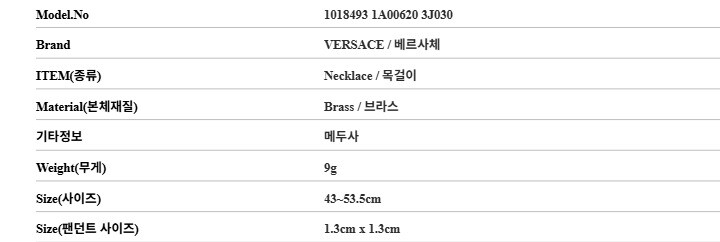 [명품] 1018493 1A00620 3J030 공용 실버 목걸이