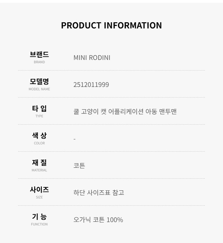 미니로디니 2512011999 (Cool cats application sweatshirt) 쿨 고양이 캣 어플리케이션 아동 맨투맨