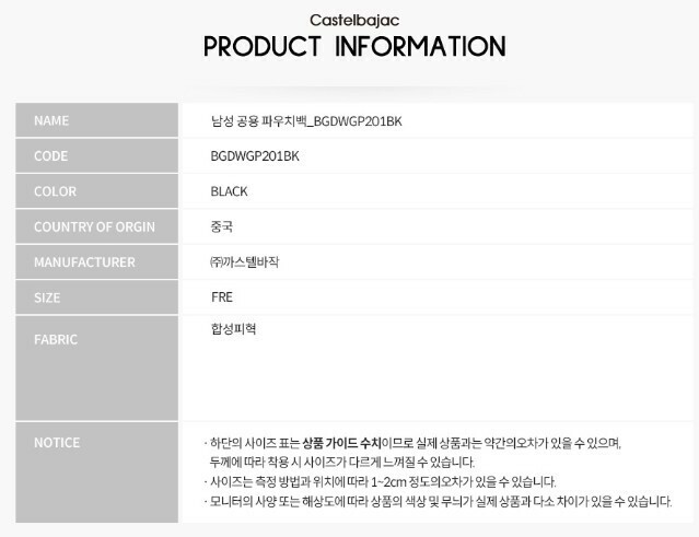 | 1. 품명 및 모델명 | 남여공용 케릭터 포인트 골프 파우치 백 |