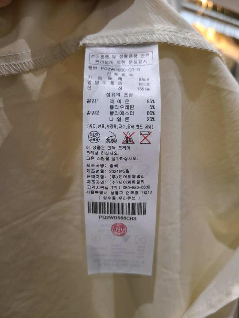 1. 제품 소재 (섬유의 조성 또는 혼용률을 백분율로 표시, 기능성인 경우 성적서 또는 허가서) 레이온 95%, 폴리우레탄 5%, 폴리에스테르 80%, 나일론 20%