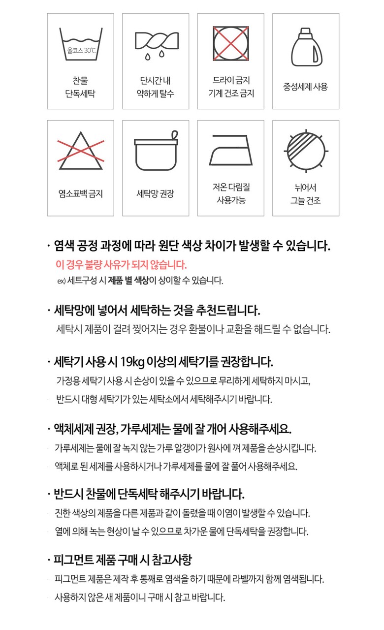 7. 세탁방법 및 취급시 주의사항 | (상품기본정보) 원산지 |