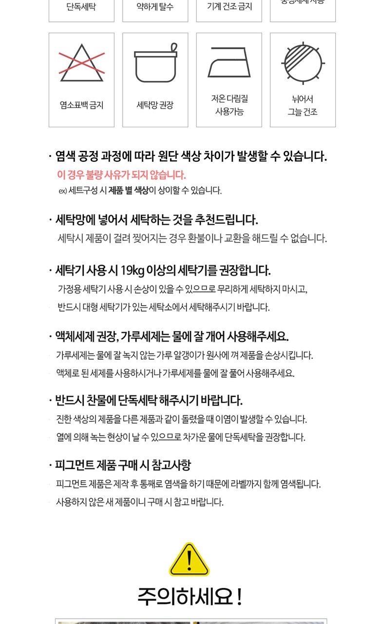 7. 세탁방법 및 취급시 주의사항 | (상품기본정보) 원산지 |